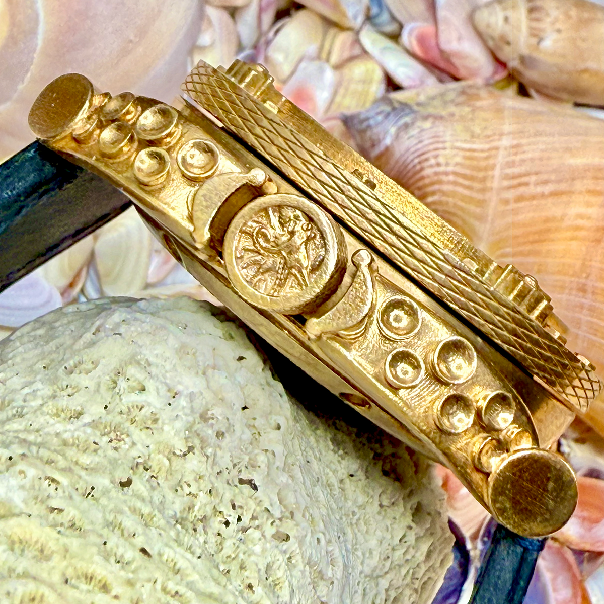 - Hand-Cast Bronze Case/Bezel/Crown/Buckle