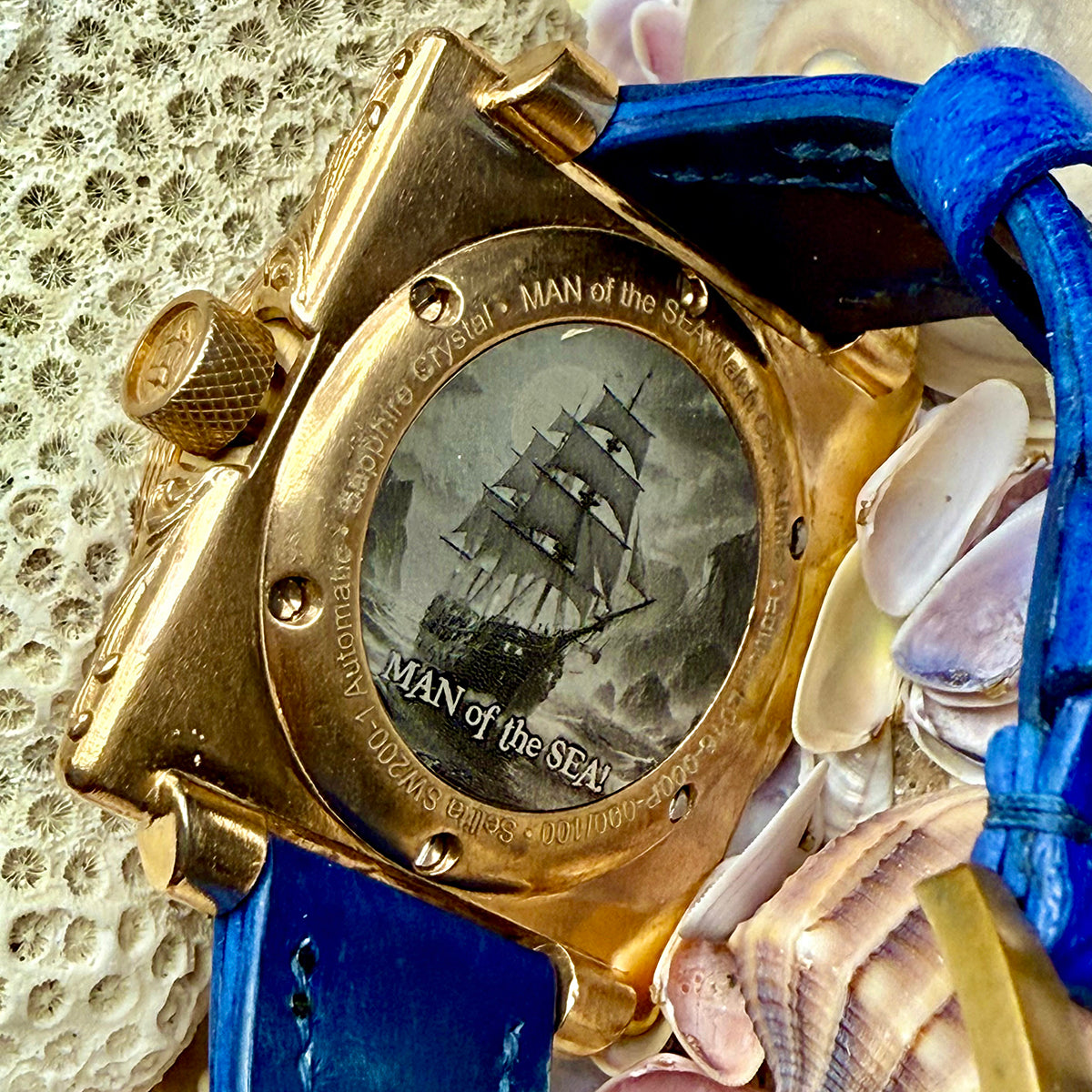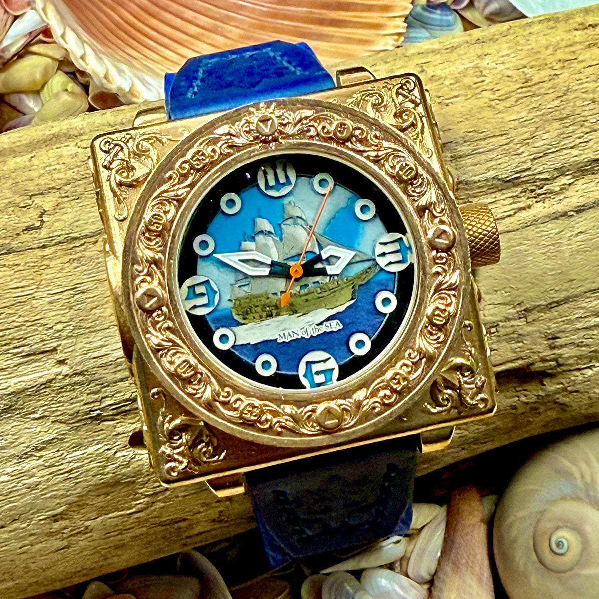 Ahoy mateys! This may be my most elegant design so far and it screams nautical with the anchors and wave splashes on the case! Is there anything more stunning than a tall ship, fully rigged, gliding across a sea and sky of vibrant hues of blue? You can set sail and take a quick voyage anytime you want by just looking down at your wrist. Smooth seas!