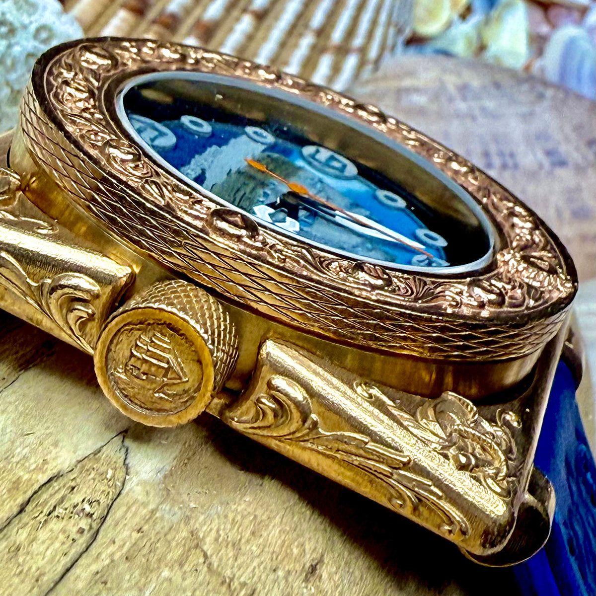 - Multi-Layer, Laser-Etched, Hand Painted Dial