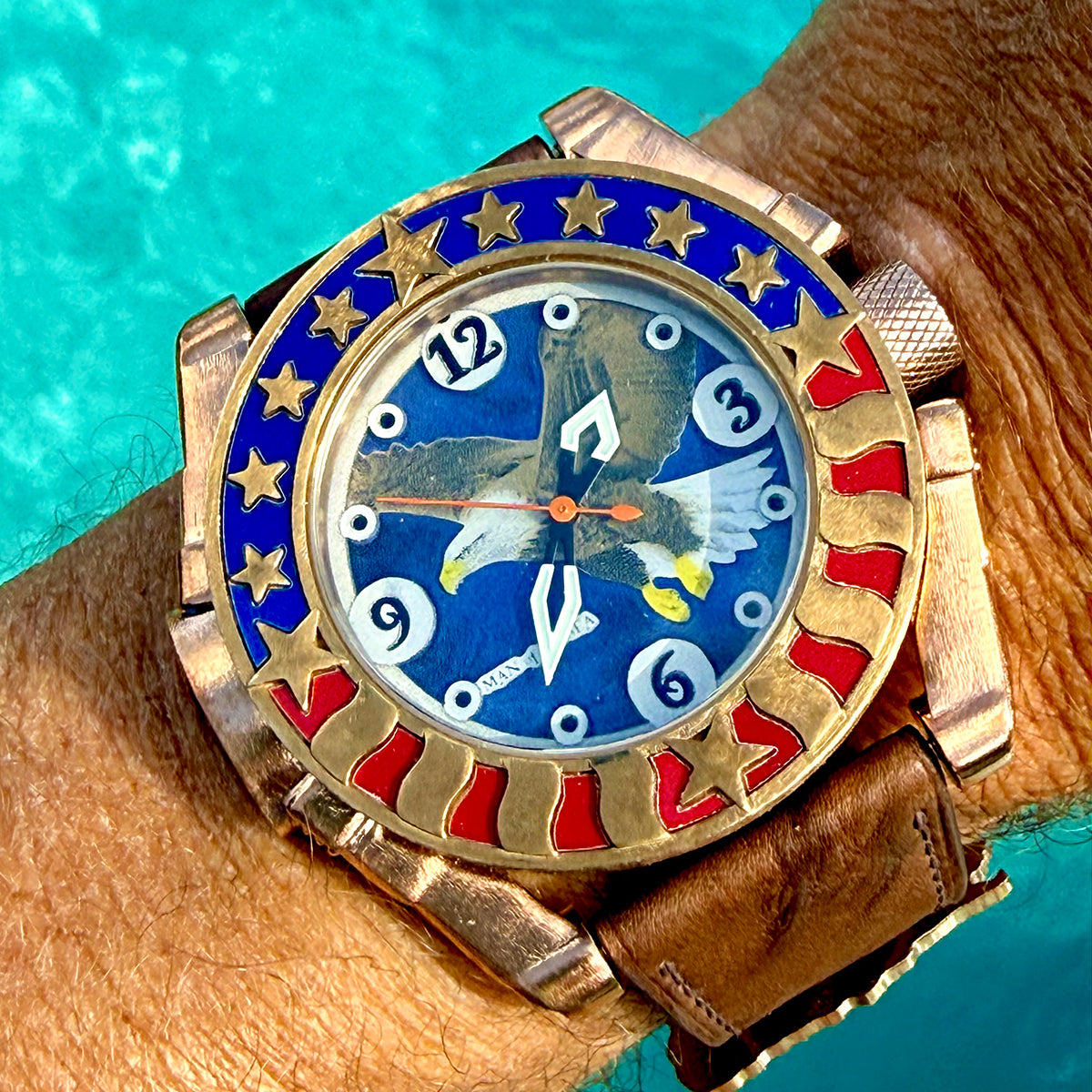 The United States of America celebrates the 250th anniversary of our nation's independence in 2026! Our founding fathers knew that it would not be easy to maintain the Republic because Freedom Isn't Free! Come join in the historic festivities with this America Bald Eagle dial, case, crown and buckle combination. We love the Red, White and Blue and the Stars and Stripes, too!